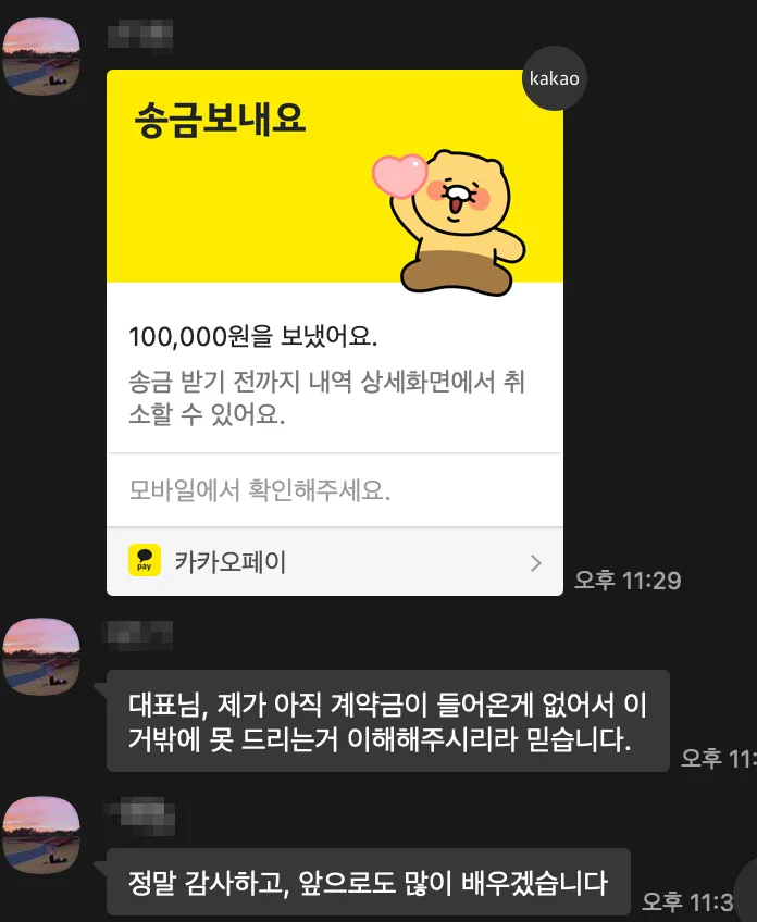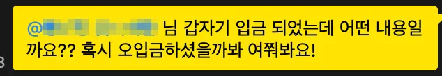 ํต์ฅ์ ์๊ฐ์๋ถ ์ด๋ฆ์ผ๋ก 10๋ง์์ด ๋ค์ด์๊ธธ๋ ์๋ชป ๋ณด๋ด์